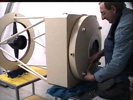 Die Hauptspiegelzelle wird mit einem Spezialwerkzeug am Tubus angeschraubt.