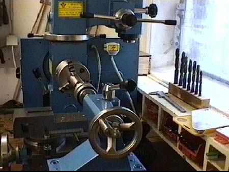 Herstellung der Sekundärspiegelachse. Aus Gewichtersparnisgründen wird sie ausgehöhlt. Sie wird später von den Biegeblechen gehalten