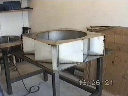 Der Tragkasten während der Herstellung. Er ist bis auf die Haltebolzen der Hauptspiegelzelle und die äusseren Deckbleche fertiggestellt