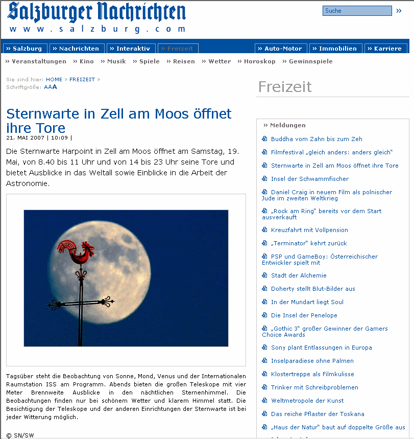 Österreichischer Astronomietag 19.05.2007: Ankündigung der Veranstaltung in den SN